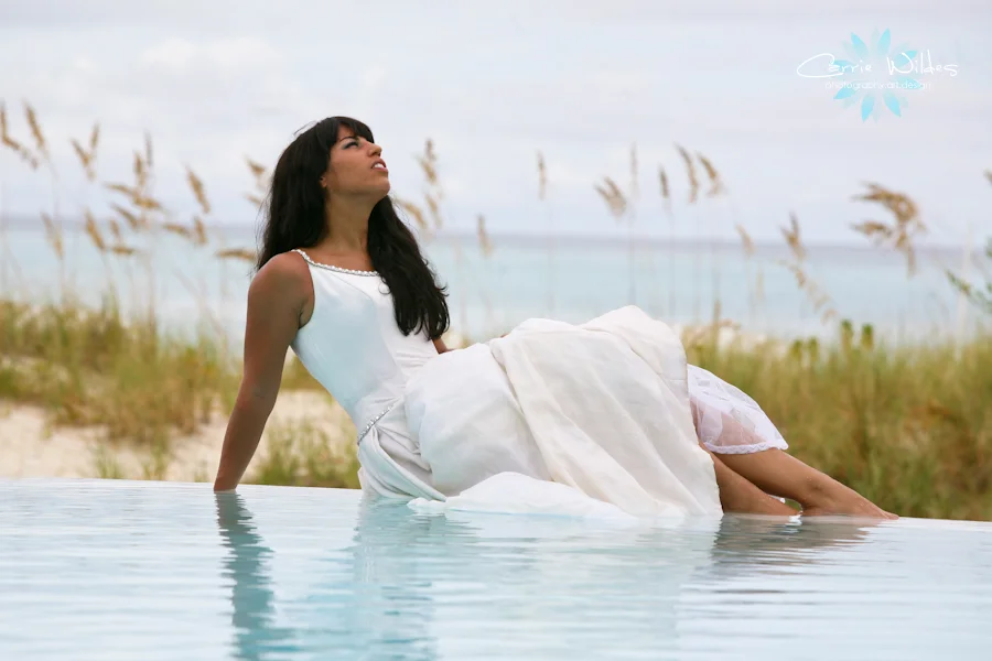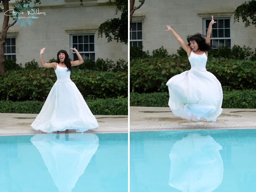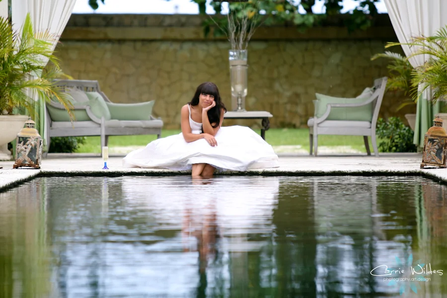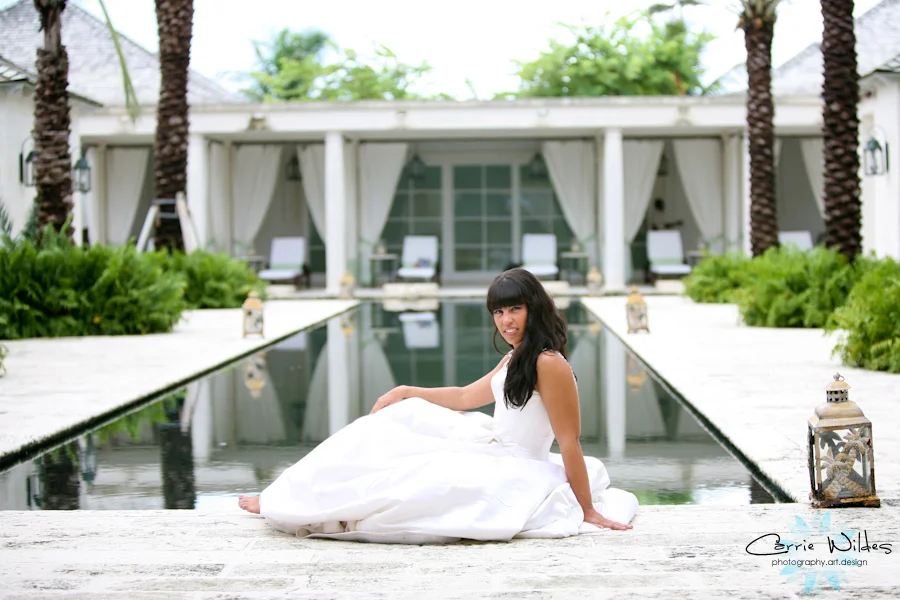 Crystal blue water, a gorgeous eternity pool overlooking the ocean, basically paradise. Why wouldn't Nicole and Ken choose Turks and Caicos for their destination wedding?? There will be lots more on their wedding details tomorrow! The day before the wedding I got to do a really fun back in the dress (aka trash the dress) session with Nicole. The Regent Palms is surrounded by beautiful gardens, fountains and a spa that is to die for all right on the ocean so no need to even leave the property. Nicole's wedding gown was from the Vera Wang collection so I had her bring a second gown that she got from a consignment shop for this session. Then there's no problem getting it wet, sandy or jumping in the pool:-) Wedding sneaks coming soon!