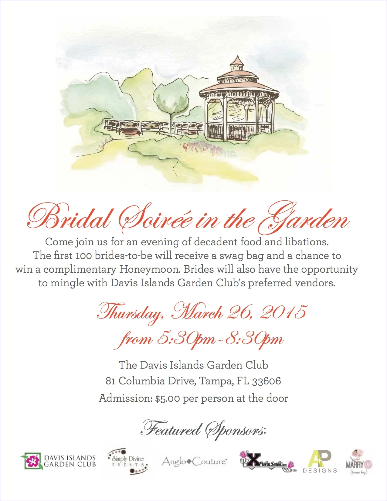 Join us for a fun evening of tasty food and fun!! Lots of fantastic giveaways for brides-to-be and a chance to meet with preferred wedding vendors from around Tampa! Hope to see you there!