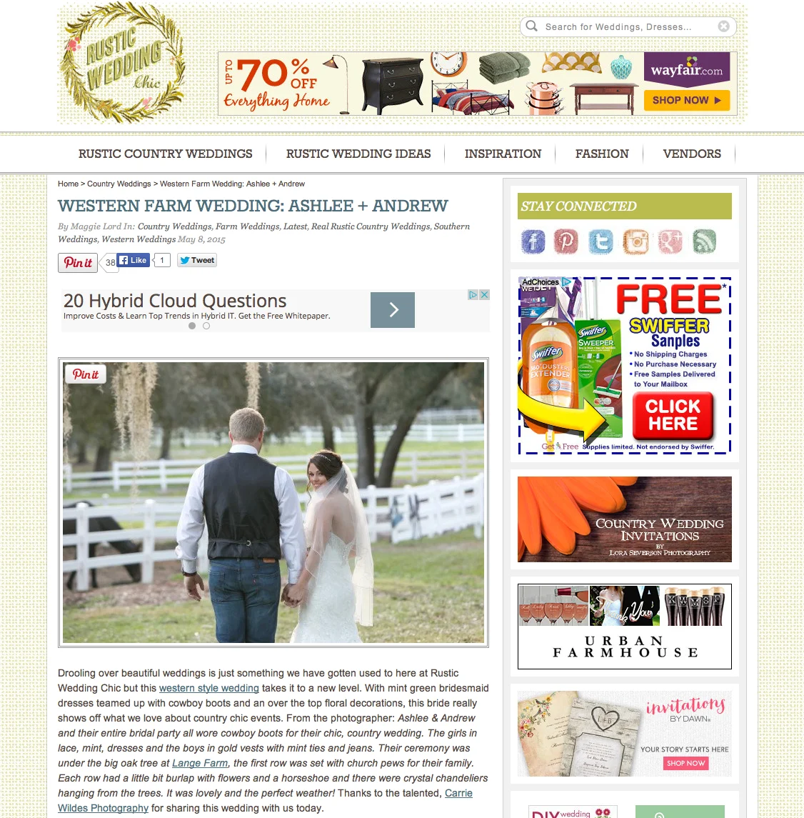 Ashlee and Andrew's perfect country chic wedding has been featured on Rustic Wedding Chic! Stop by to see more of their story!