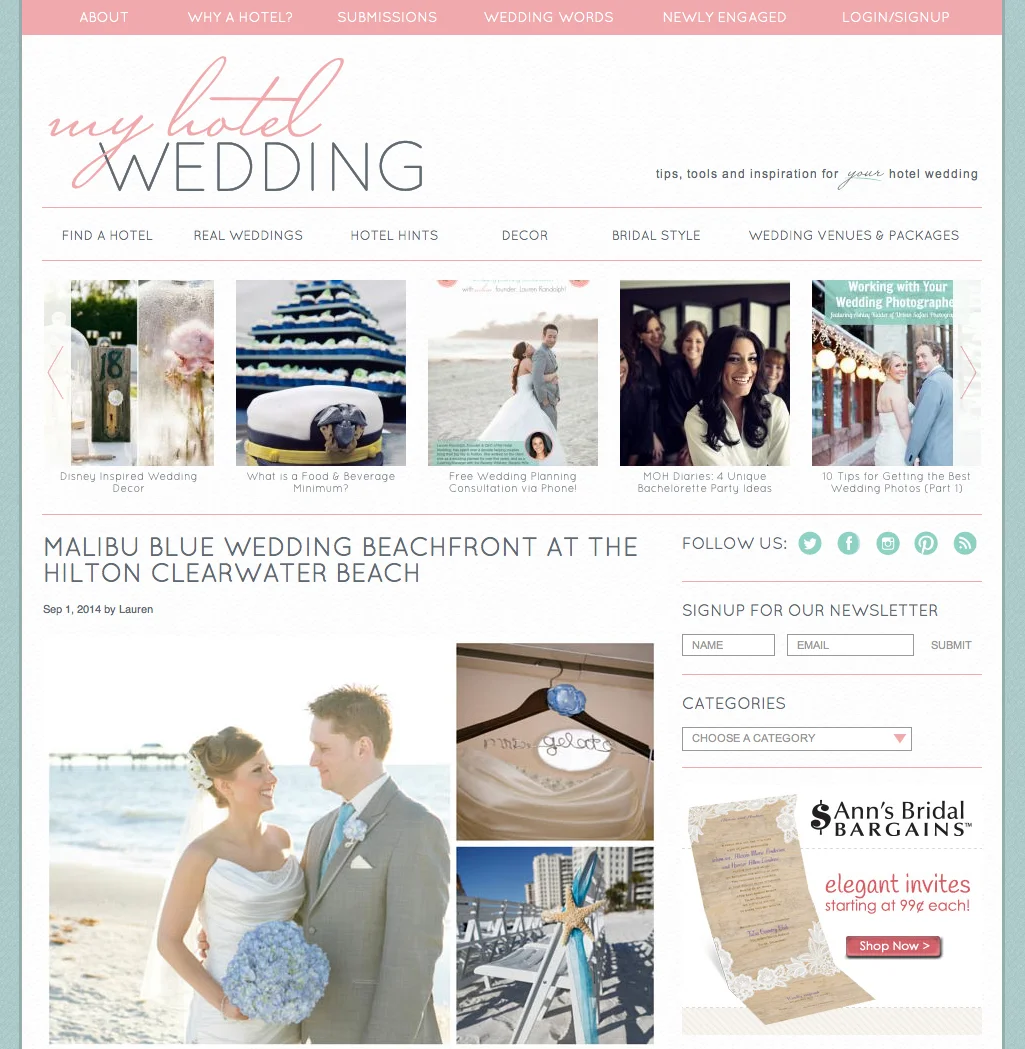 My Hotel Wedding Blog featured Bailey and Phil's blue beachfront wedding! They loved that they served gelato in honor of their new last name!