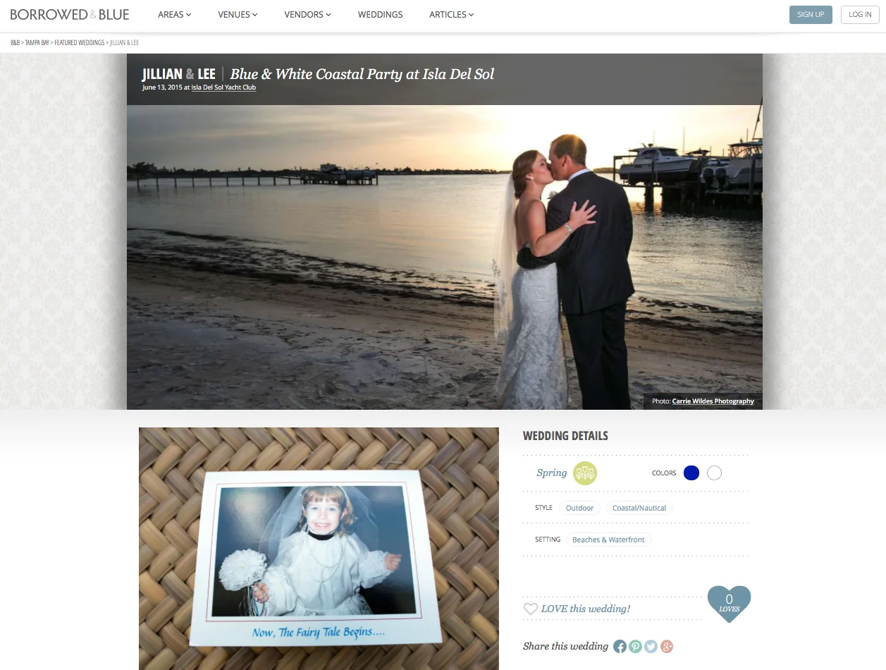 Jill & Lee's gorgeous Isla Del Sol Yacht Club wedding is featured on Borrowed and Blue today! Stop their blog to see the full feature!!