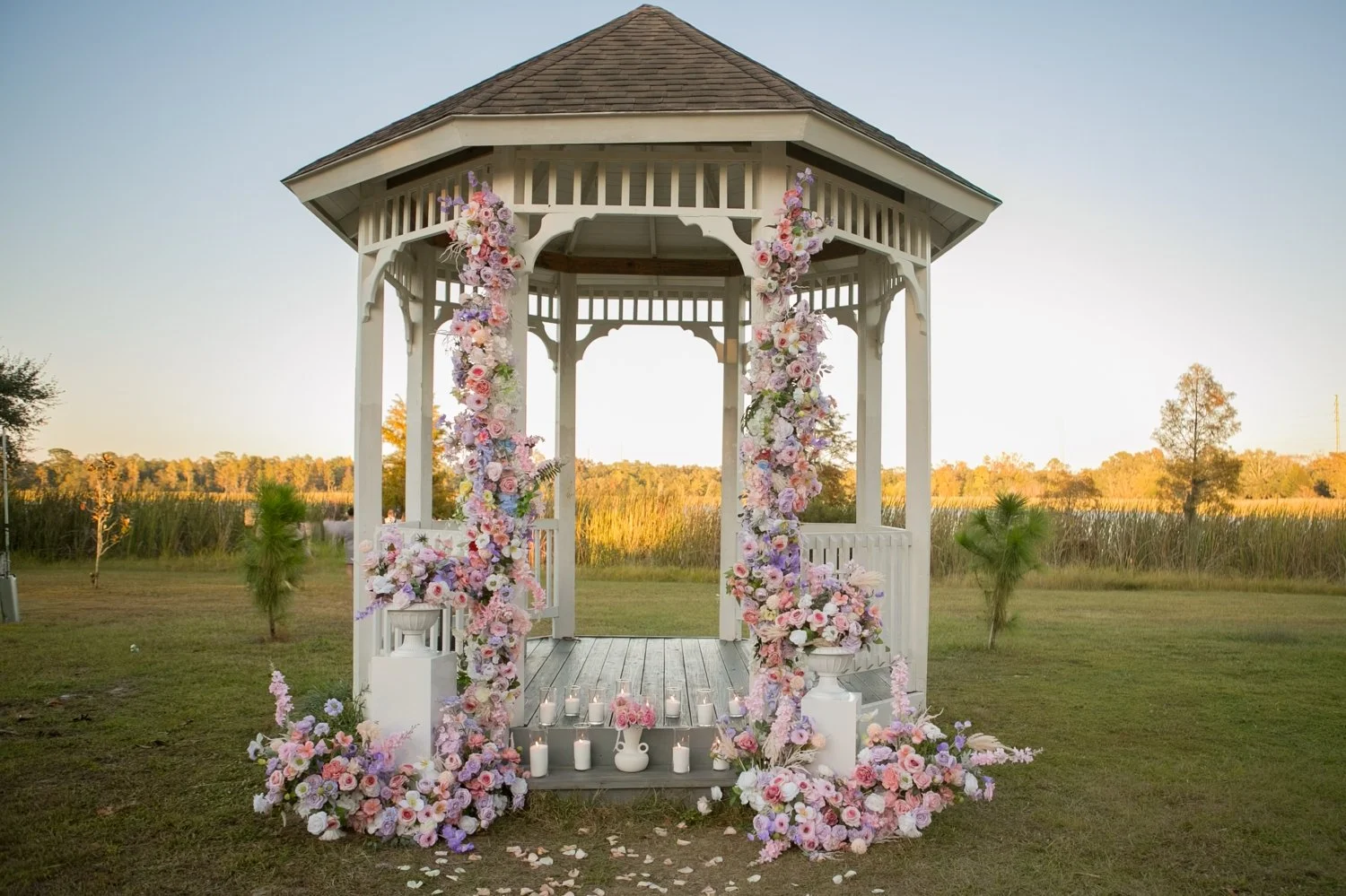 When Andy told me that Erica loves Taylor Swift and he wanted a romantic, dreamy vibe, I immediately recommended Lake Park in Lutz. It has a beautiful white arch that was ideal for decorating with florals and doesn’t require reservations, which is ideal for surprise proposals.