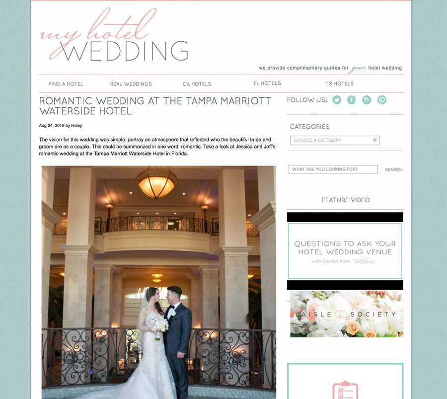 I love how My Hotel Wedding summed up Jessica and Jeff's wedding "The vision for this wedding was simple: portray an atmosphere that reflected who the beautiful bride and groom are as a couple." Definitely stop by the full feature by clicking the link below!