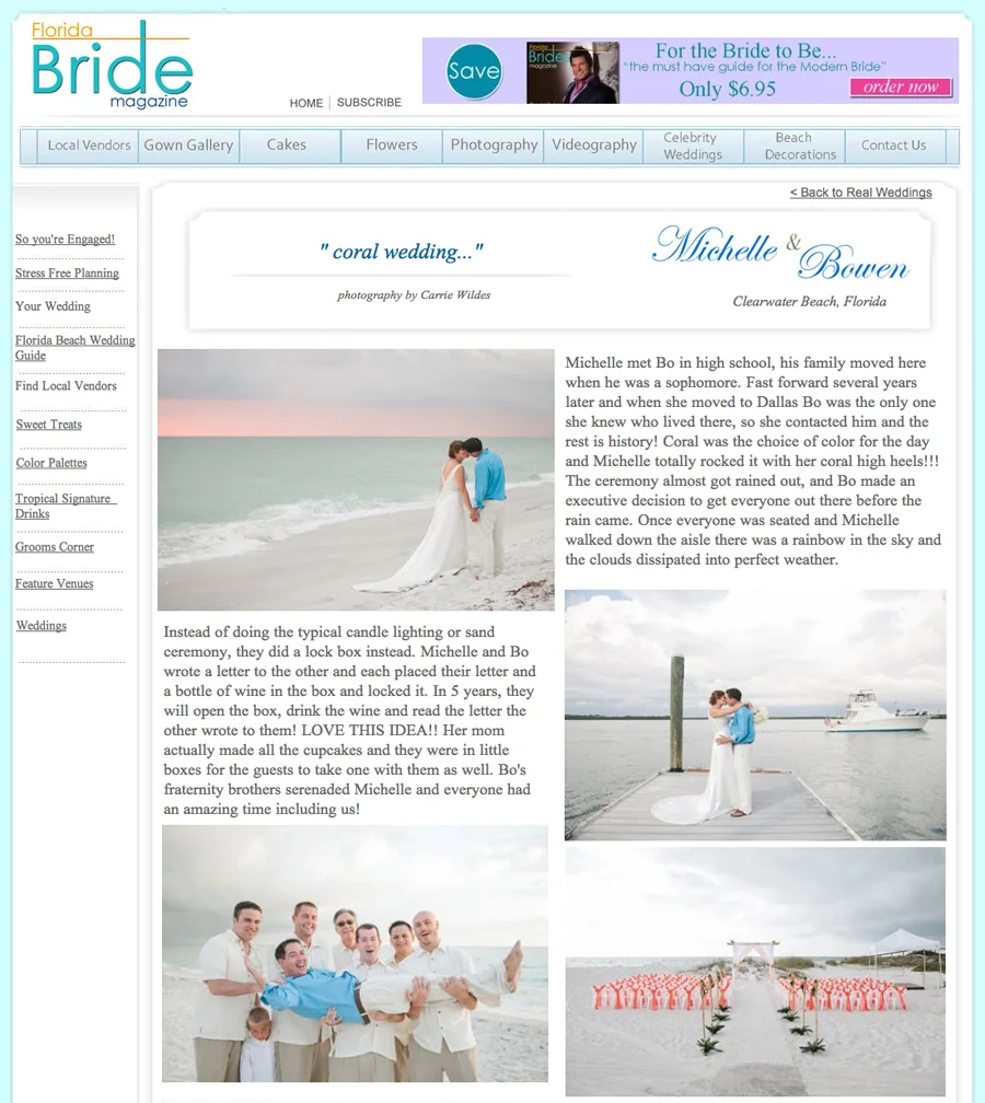 Living in a tropical paradise means we get the honor of photographing people who come to town from far flung places to get married because the area either means something to them or their families or they just want to go somewhere magical. Bonnie + Mike and the rest of their guests traveled from Maryland for a destination wedding at Opal Sands Resort on Clearwater Beach with their ceremony at nearby St Brendanβs Catholic Church.